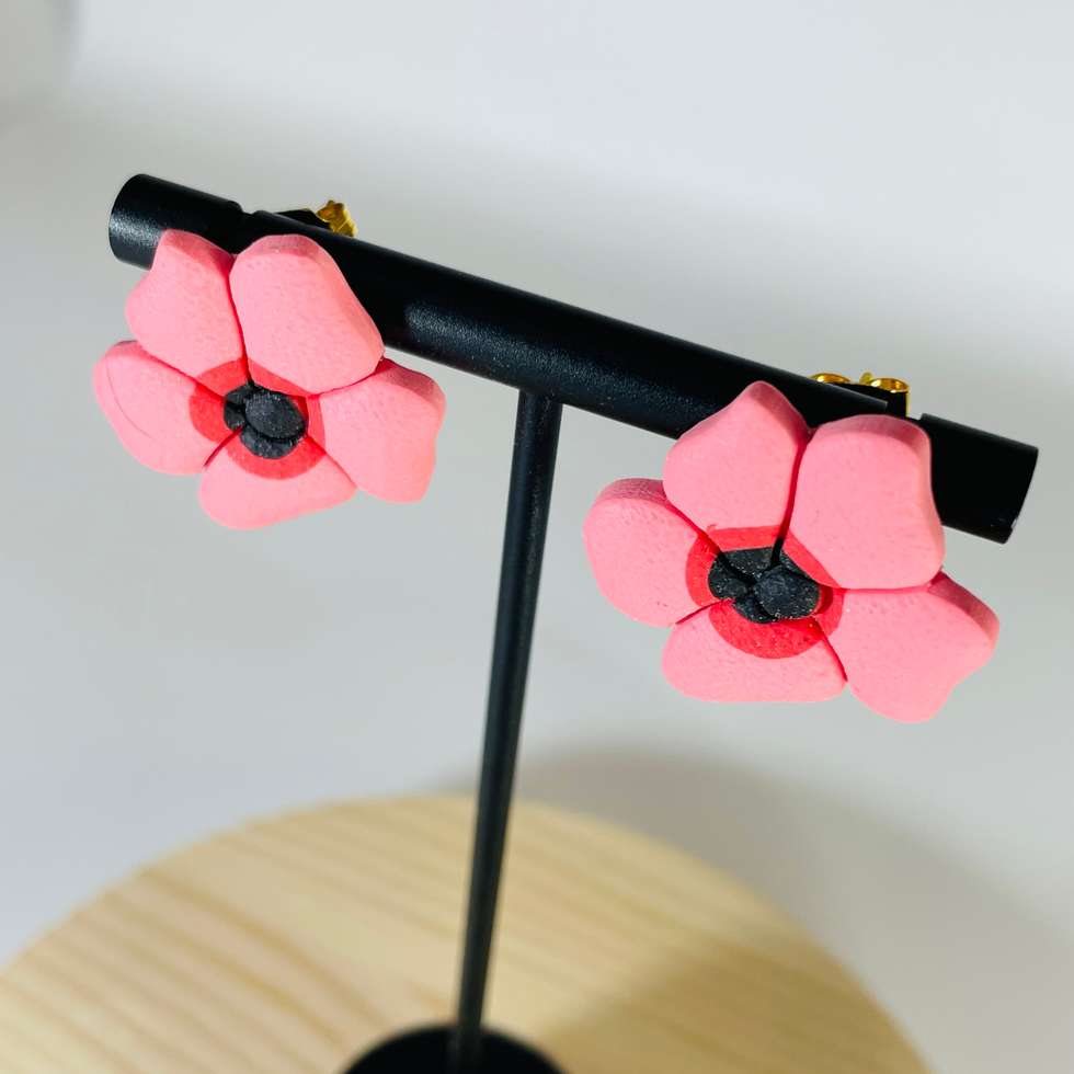 Bold and bright, these poppy-inspired studs are all about fun energy. Handcrafted from polymer clay in a vibrant pink with a striking black-and-red center, they’re lightweight yet eye-catching. Perfect for adding a playful burst of color to your everyday look or making a bold statement at night out.