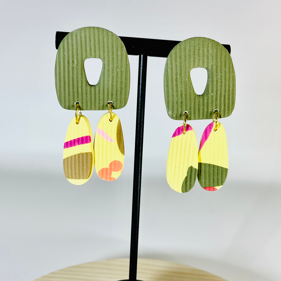 A little leafy, a little sunshiney — Sprout & About is for the girlies who treat every day like a slow stroll through a botanical garden. The earthy green contrasts with bold spring patterns, making these earrings feel playful yet grounded. Nature, but make it wearable art.